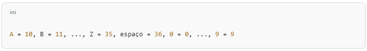 Se tivermos um número ímpar de caracteres, o último é convertido diretamente para binário com 6 bits.