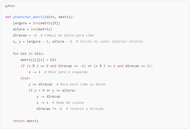 Um algoritmo básico para distribuir os bits na matriz poderia ser: